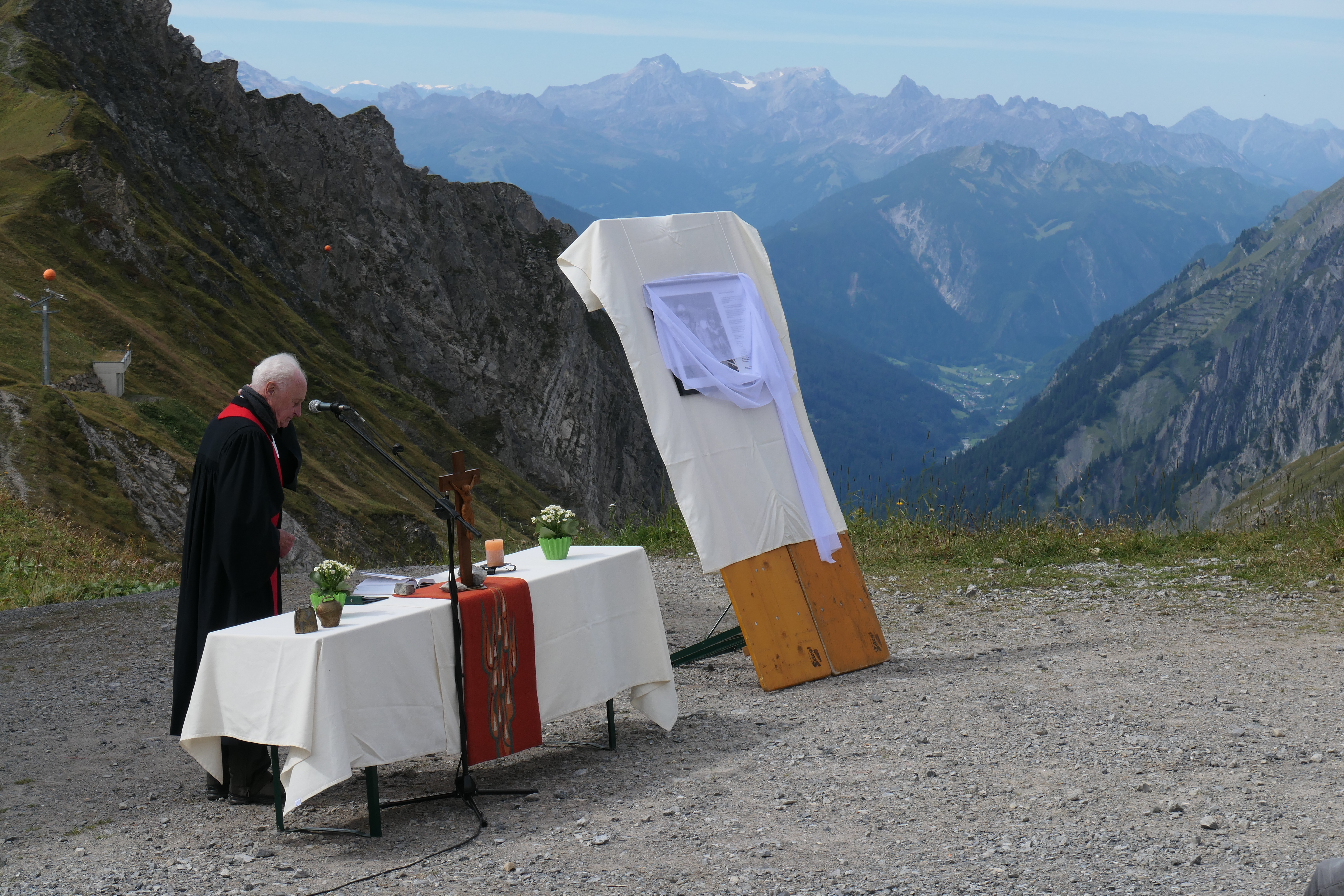 Ulm/Klösterle. Die Sektion Ulm des Deutschen Alpenvereins (DAV) hatte auf ihrer Ulmer Hütte am Arlberg doppelten Grund zum Feiern: Die Fertigstellung eines Anbaus und die Benennung eines Gastraums im bestehenden Gebäude nach Ruth und Adolf Merckle. Vorsitzender Dr. Heinz Schmid konnte am 7. September zur Feier und zum Berg-Gottesdienst vor der Hütte, die im Gemeindegebiet Klösterle auf 2285 Metern liegt, rund 100 Gäste begrüßen. Die von Eva-Maria und Konrad Hänsler und ihrem Team (Architekturbüro Nikolussi-Hänsler, Bludenz) geplante Erweiterung fügt sich unauffällig an das Gebäude an. Mit einem Aufwand von rund 800.000 Euro wurden Zimmer für Beschäftigte mit zeitgemäßen Sanitäranlagen geschaffen, worüber sich insbesondere Hüttenwirtin Karin Turin freut. Sie beschäftigt in der Hauptsaison bis zu 20 Personen. Im Winter werden 5.000, im Sommer 1.200 Übernachtungen gezählt. Auch die etappenweise durchgeführte Fassadenrenovierung konnte jetzt abgeschlossen werden. In einer Berghütte sei die Küche das „Herz des Hauses“, sagte der Pfarrer Gerhard Solbach aus Kempten-Durach in seiner Predigt. Der Gastraum sei die gute Stube, die „Seelenstube“. Menschen erzählten sich mit leuchtenden Augen von den Bergen, teilten Leid und Enttäuschung. Dem Blaubeurer Unternehmer-Ehepaar Ruth (1937-2018) und Adolf Merckle (1934-2009) seien Begegnungen wichtig gewesen, sagte Solbach, der Ruth Merckle als Kirchengemeinderätin aus seiner Zeit als Blaubeurer Bezirksjugendpfarrer kannte. Das Ehepaar unterstützte den DAV in vielfältiger Weise. Ruth Merckle war Mitglied im Vorstand und im Ältestenrat der Sektion und ging als Sportwartin mit jungen Leuten zum Skifahren. Die Begeisterung für die Berge führte Ruth und Adolf Merckle zusammen mit ihrem Freund, dem Bergführer Sigi Hupfauer, auf mehrere Sechstausender. Hupfauer war bei der Enthüllung der Gedenktafel auf der Ulmer Hütte anwesend, ebenso die Söhne Ludwig und Philipp Merckle. Die Umbenennung der Verwall-Stube in Ruth und Adolf Merckle-Stube sei für die Familie eine große Ehre, sagte Ludwig Merckle. Er zollte den Ehrenamtlichen der Sektion großen Respekt und sicherte weitere Unterstützung zu.