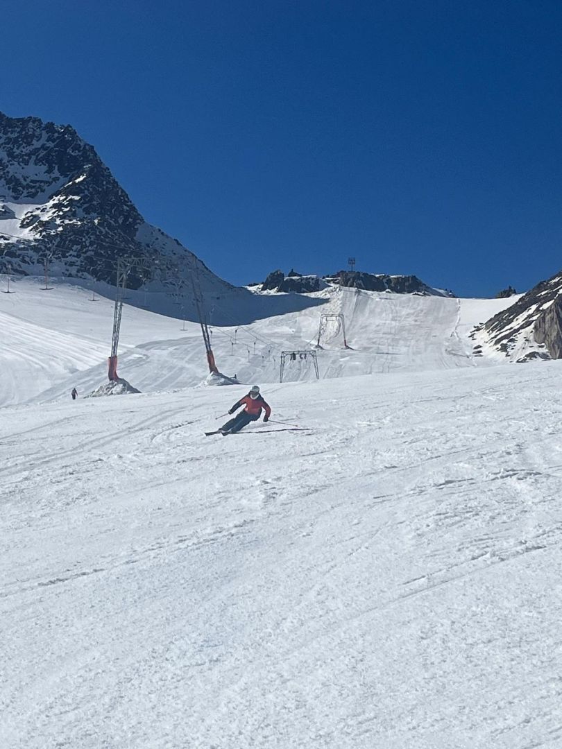 Endlich wieder Stubai. Nach einer langen Anreise sind alle endlich bei Tom in der Altbekannten Jugendherberge angekommen. Am nächsten Tag ging es schon früh los, wir starteten um 7:30 Uhr an der Gamsgarten Bahn. Als wir oben ankamen gingen wir in den Selbstversorgungsraum und zogen uns an, dann waren wir auch schon auf der Piste. Die ersten 2 Tage fuhren wir Riesenslalom, dann hatten die Trainer eine Idee nämlich das wir eine Formation bilden sollten. Zum Schluss fuhren wir auf einer Hot-Line. Es war lustig und auch anstrengend.