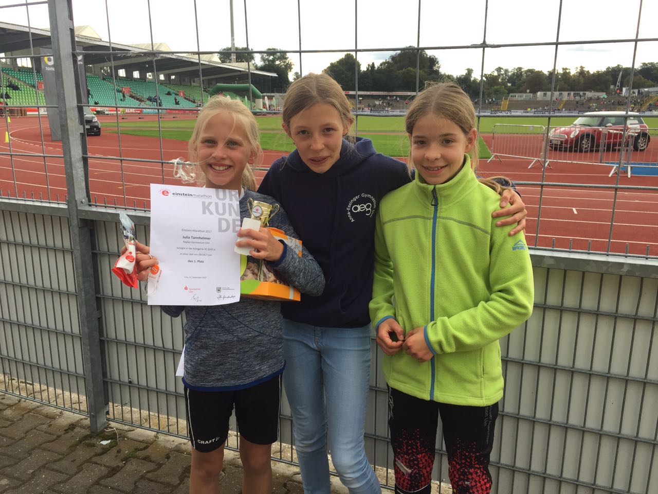 Bei den Schülern 14/15 sorgte Kilian Seybold für eine Überraschung. Nach fehlerfreiem Schießen sicherte er sich hinter den älteren Elias Asal und Gregor Dittrich Platz drei. Die Schülerinnen 12/13 reihten sich hintereinander auf Platz vier (Johanna Rauch), fünf (Maike Steck), sechs (Julia Tannheimer) und acht (Jule Ritter) ein. Alle vier waren am Samstag schon beim Einstein-Lauf angetreten. Hier gewann Julia Tannheimer ihre Altersklasse ebenso wie ihr Bruder Lukas (Jg. 2007). Einen starken Auftritt hatte hier Lisa Kohler, die über 2,5 Kilometer auch der älteren Konkurrenz das Nachsehen gab. Ebenfalls siegreich war Lena Hanses. Auch Mara Biedenbach, Till Teubner, Maike Steck und Johanna Rauch zeigten tolle Rennen, wie Trainerin Annika Pfeil auf der Tribüne feststellen durfte.