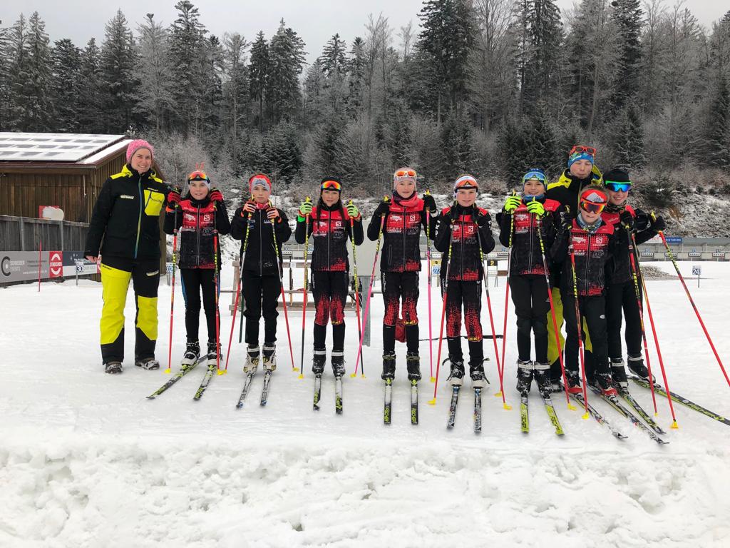 Einziger Starter in der Jugend 16/17 war Kilian Seybold, der seinen ersten Winterwettkampf mit dem Kleinkaliber-Gewehr auf dem Rücken respektabel absolvierte. Insgesamt zehn Fehler - und damit zweieinhalb Strafminuten - verhinderten eine noch bessere Platzierung als Rang neun. 4:07,0 Minuten lag er damit hinter Sieger Mathias Färber (3 Fehler/45 Strafsekunden), der nach 19:35,3 Minuten ins Ziel lief. Bei den Mädchen kam Charlotte Gallbronner mit zwei Fehlern durch und siegte in 20:12,8 Minuten souverän vor den beiden Notschrei-Athletinnen Carina Gutmann (9/+1:28 Min.) und Sophia Weiß (9/+1:45,2) sowie ihrer Teamkollegin Lisa Kohler (6/+2:04). Richtig daneben ging das Schießen für Mara Biedenbach, die mit 13 Fehlern chancenlos war. Aufgrund einer guten Laufzeit und der in dieser Saison bislang gezeigten Leistungen wurde sie dennoch für den Alpencup in Ridnaun am kommenden Wochenenende nominiert.